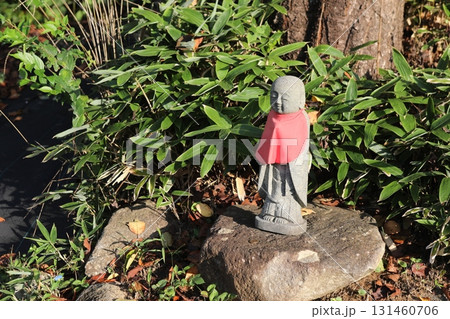 朝日を浴びた地蔵尊。