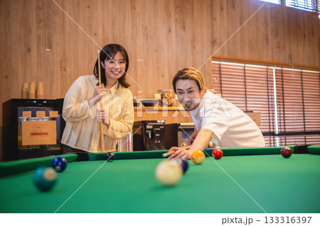 ビリヤードを楽しむカップル