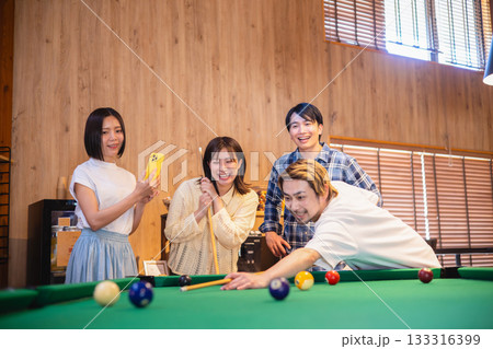 ビリヤードを楽しむ仲間
