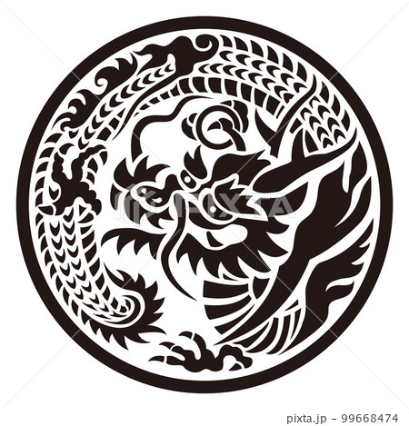 昇龍のシルエットイラスト素材 ベクター 辰年 年賀状素材