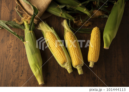 真上から見たテーブル背景のとうもろこし