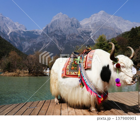 ヤクと玉龍雪山 雲南省 中国 アジア
