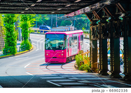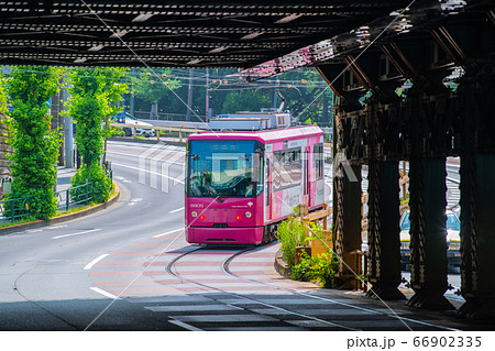 日本の東京都市景観 王子駅前の東京さくらトラム(都電荒川線)を望む