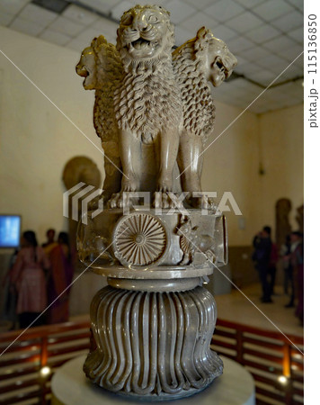 四頭獅子像はBC3世紀に仏教を世界に広めたマウリア王朝アショカ王の柱飾りでインドの国章になっている