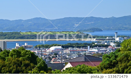 大村市(長崎県/新大村駅建設後) 遠景に針尾電波塔と西海橋(佐世保)