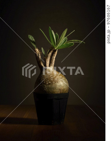 鉢に入ったパキポディウムのイラスト・パキポディウムグラキリス・ビザールプランツ・植物