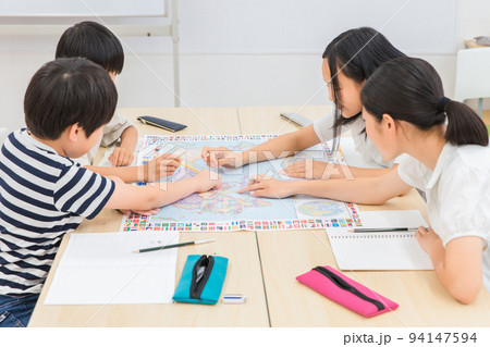 友達と一緒に勉強する子供達(グループワーク・自習・学童保育)