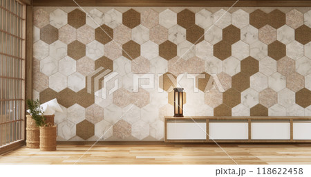 Tv cabinet in modern empty room Japanese - zen style,minimal designs.