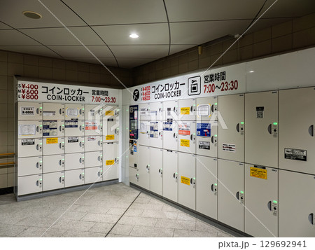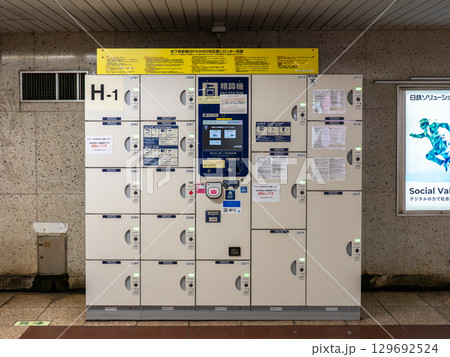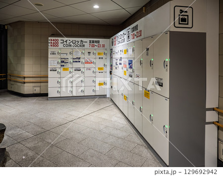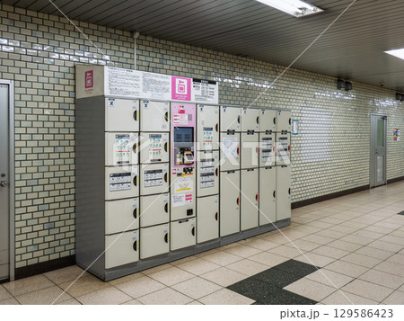 東京都市風景 都心の地下連絡通路に設置されたコインロッカー