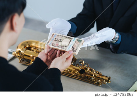 サックスを売却する男性