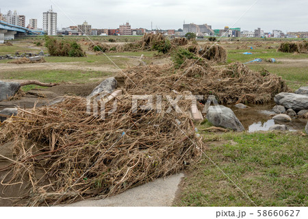 東京都、多摩川の台風被害