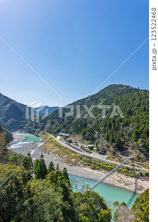 春日和 大自然の山並みを背景に映える球磨川風景 (球磨郡球磨村)