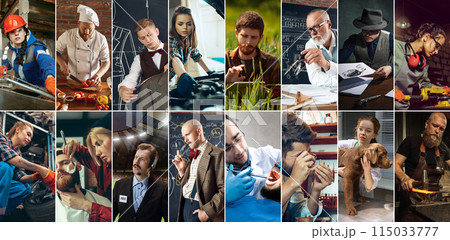 Different people showing various professions. Diversity of skills. Collage made of men and women.