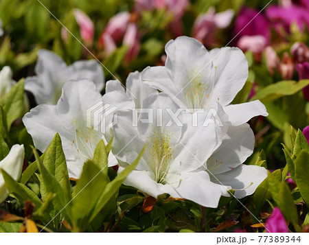 大輪の白い琉球ツツジ 北海道で春から初夏に一斉に咲く花のイメージ