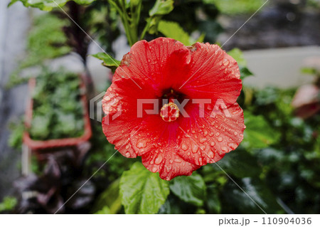 Red Hibiscus flower, Ishigaki island, Okinawa.
