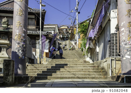 琴平 こんぴら表参道 石灯籠と琴平の町並み 香川県琴平町
