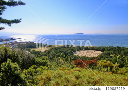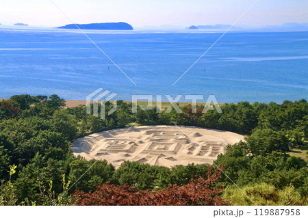 日本 香川県観音寺市の琴弾公園の展望台から見える寛永通宝を模した銭形砂絵