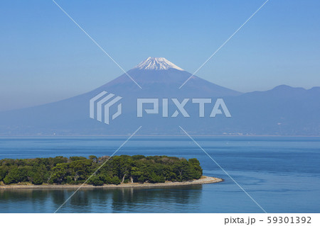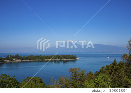 静岡県沼津市の大瀬崎から望む富士山と駿河湾