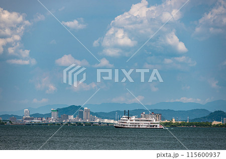 滋賀県大津市浜大津からの初夏の琵琶湖とミシガン