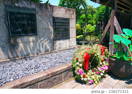 静岡県:初代米国領事館となった玉泉寺/ハリス顕彰記念碑がある風景【国指定史跡】下田市