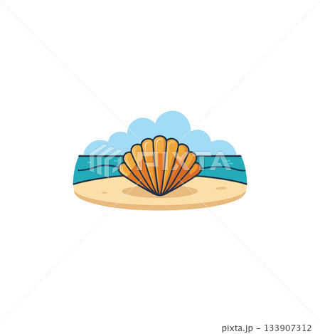 Stylized seashell illustration with coastal backdrop evoking tranquil beach vibes and summer