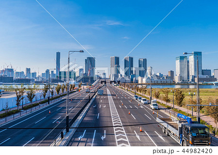 汐留から望む築地市場跡と隅田川沿いのビル群 東京都中央区