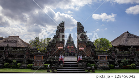 Monkey sculpture fully covered with green moss in Ubud's Monkey Forest. Bali, Indonesia.
