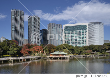 Japan, Tokyo, Hamarikyu Garden in momiji season.