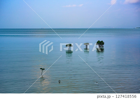 石垣島の干潟に広がるマングローブ林が織りなす自然の風景