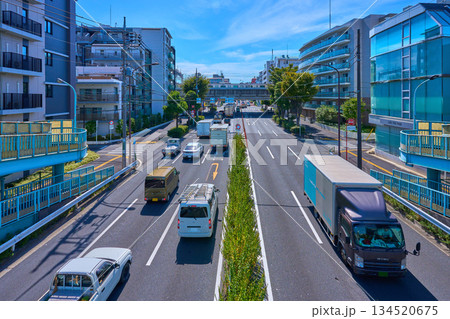 環状八号線 環八通り 車 世田谷区 都市 交通 東京 都市景観 ワイド 広角 ヒキ