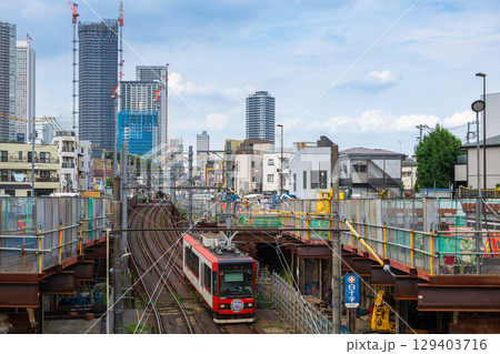 都市計画道路 環状第5の1号線工事区間を走る都電荒川線