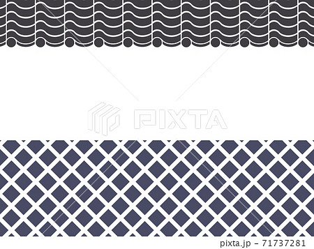 なまこ壁と瓦屋根の塀のフレーム素材_和風イラスト_シルエット