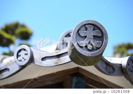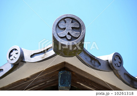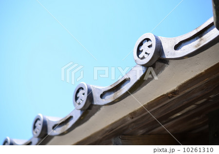 寺社の境内にある軒先の瓦のイメージ