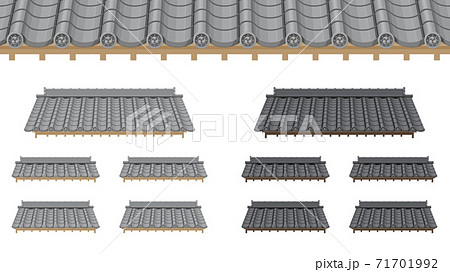瓦屋根のイラストセット_和風素材