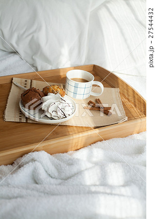Sweet breakfast in bed with coffee