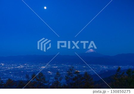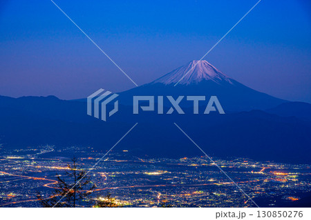 (山梨県)甘利山から望む甲府の街灯りと富士山
