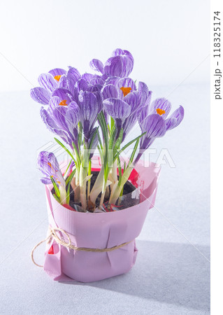 Purple flowers of crocuses.