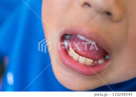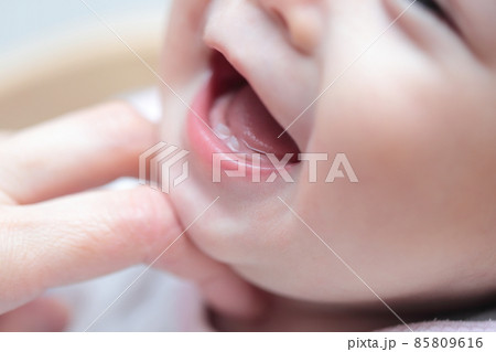 子ども 乳児 乳歯生え始め 口の中 イラスト ベクター