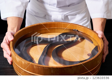イキ の 良い 鰻 が たらい で 泳ぐ 【 活うなぎ の イメージ 】