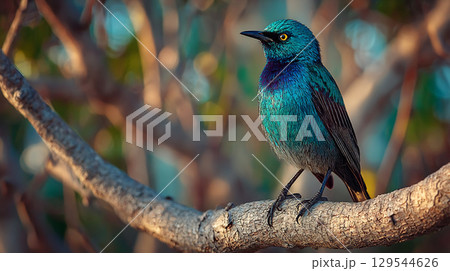 美しい色彩の小鳥が枝に止まる