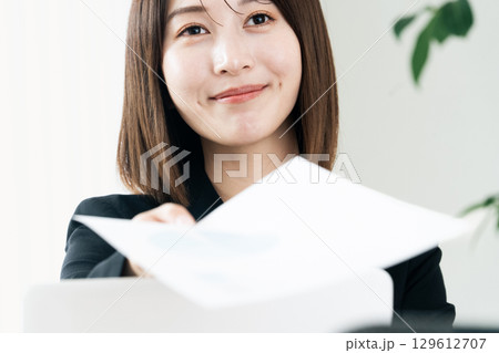 書類を手渡すビジネスウーマン