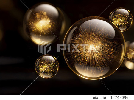 透明なピンクの水でできた球体バブルが広がる美しい背景