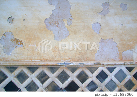日本の伝統的な工法による白と黒の格子状の壁 なまこ壁