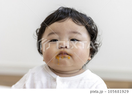 離乳食を食べる赤ちゃんの顔(0歳、生後7カ月、男の子、日本人)