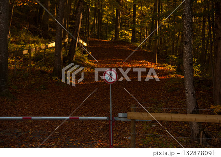 秋日森林地面與步道鋪滿落葉