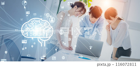 ビジネスシーン、生成AIを活用したデジタルワークフロー、クラウド、DX、デジタルネットワークイメージ