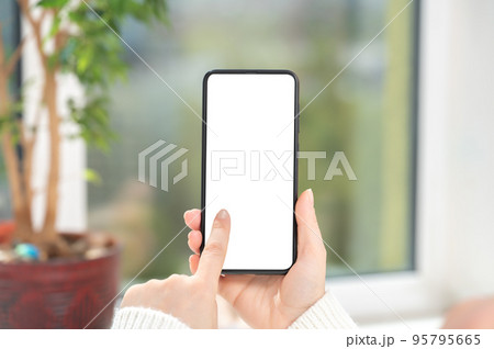 Close up view of using blank screen smartphone