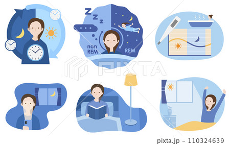 睡眠環境や眠りのメカニズムに関連するイラストセット