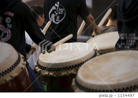 和太鼓の集団生演奏で行うライブのクローズアップ