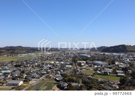 北杜市白州町、十月下旬の南アルプス甲斐駒ケ岳と麓白州の街並み